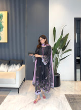 A timeless printed co-ord set with subtle butterfly embroidery. Soft viscose blend with silk finish, crease resistant and all weather friendly.